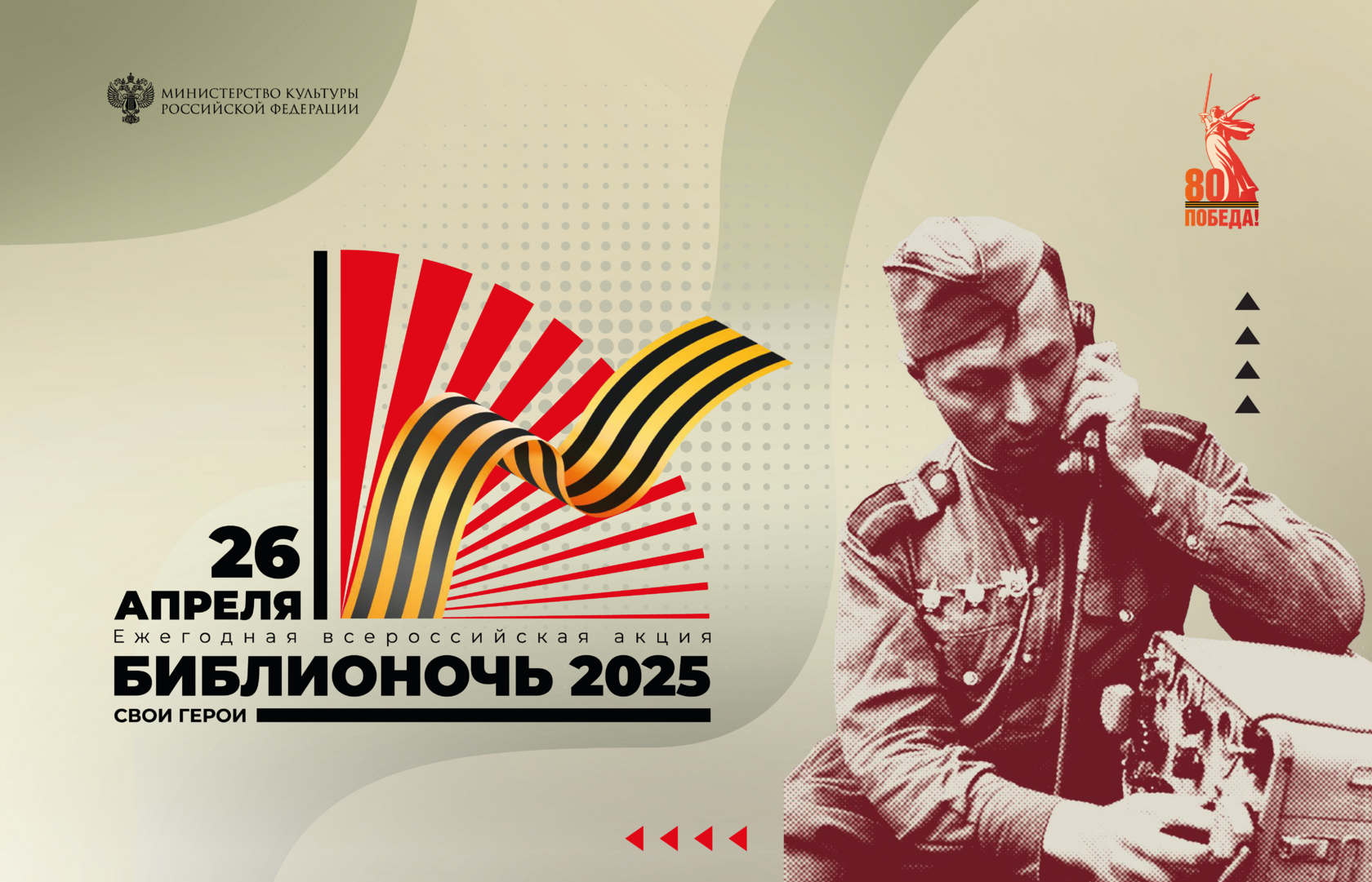 26 апреля библиотеки Красногвардейского примут участие во Всероссийской акции «Библионочь – 2025». Она пройдет уже в 14-й раз и будет приурочена к Году защитника Отечества и 80-летию Великой Победы. Тема этого года – «Свои герои». Девиз акции - «Нет в России семьи такой, где б не памятен был свой герой».