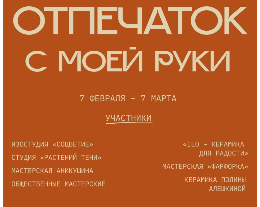 На выставку мы пригласили тех, кто объединяют людей через керамику – от крупных мастерских до локальных брендов, которые только начинают свой путь. Вдохновляясь наследием движения «Искусства и ремесла» XIX века, которое ценило ручной труд и его значимость в повседневной жизни, мы хотим показать, как современные мастерские продолжают эту традицию, делая творчество доступным для всех. Наша же выставка откроется для всех уже 7 февраля в 15:00!
